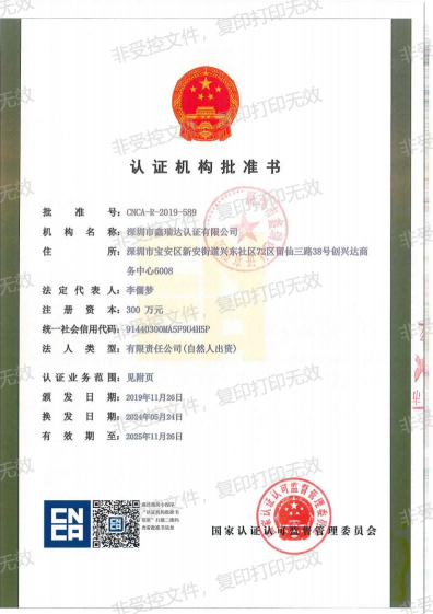 米兰体育网站(SRT)是经国家登记主管机关依法登记注册、经中国国家认证认可监督管理委员会(CNCA)批准的第三方认证机构(批准号:CNCA-R-2019-589)。公司愿景致力于创造一个公平、公正、有爱、自律的认证环境,为企业提供专业的品牌认证、售后服务认证等多维一体的专业认证服务公司。为企业提供切实可行的管理提升方案和以及诚实守信的做人原则是SRT全体同仁的行事准则及设立初心,集行业内外优秀人才热忱服务优秀企业,并致力于为企业提供切实可行的管理培训和管理方案。SRT总部设在中国深圳,现有认证人员二十余人,其中审核员有十余人。